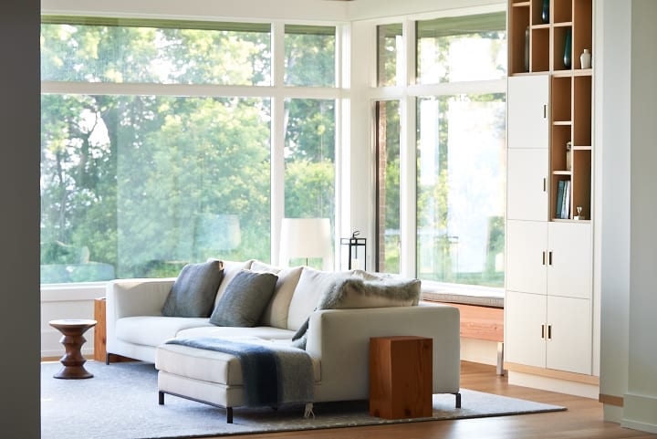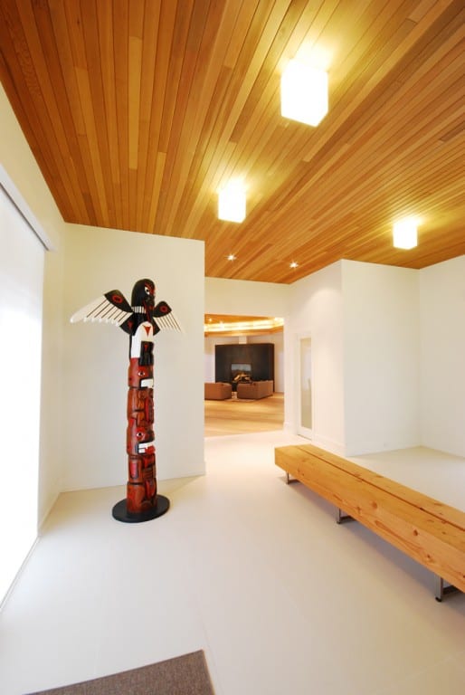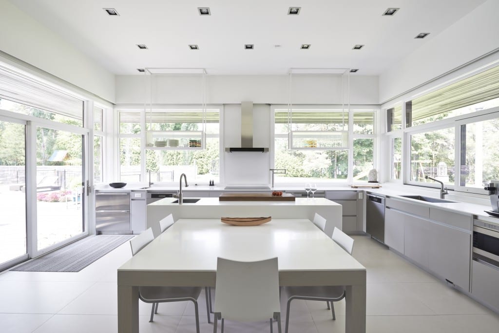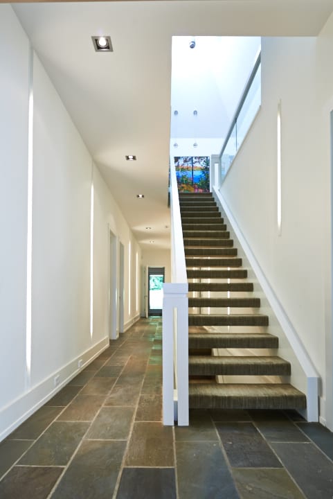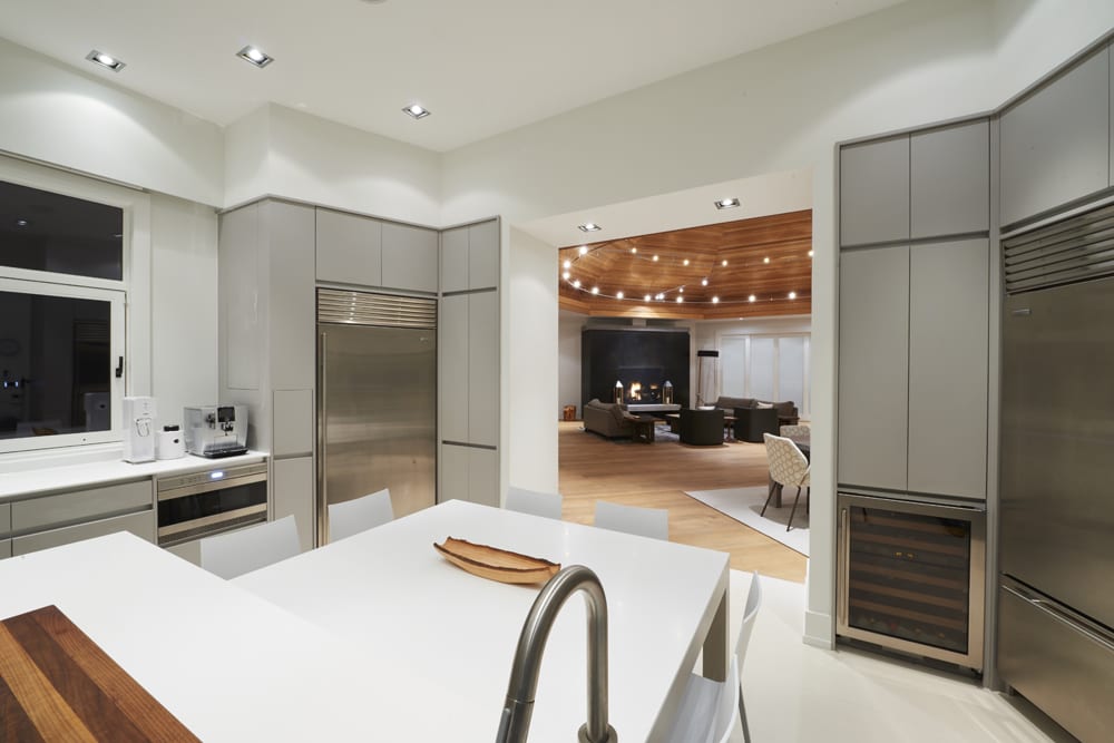 The project is located on the shores of Lake Simcoe and forms part of a suite of three buildings: a gatehouse, a cottage, and a boathouse. The cottage, an existing masonry structure, was in need of a major renovation. The Octagon Room – the hub of family gathering – is a space large enough to accommodate multiple functions however was ill suited to a Kitchen. The renovation increased the connection to the outdoors and transformed one of the spokes of the Octagon into a dedicated kitchen space. Integrated and effective lighting was an important goal for the Owner so it features prominently and subtly, all operated with a home automation system. Natural and indigenous materials and art bring warmth and beauty to this peaceful retreat.