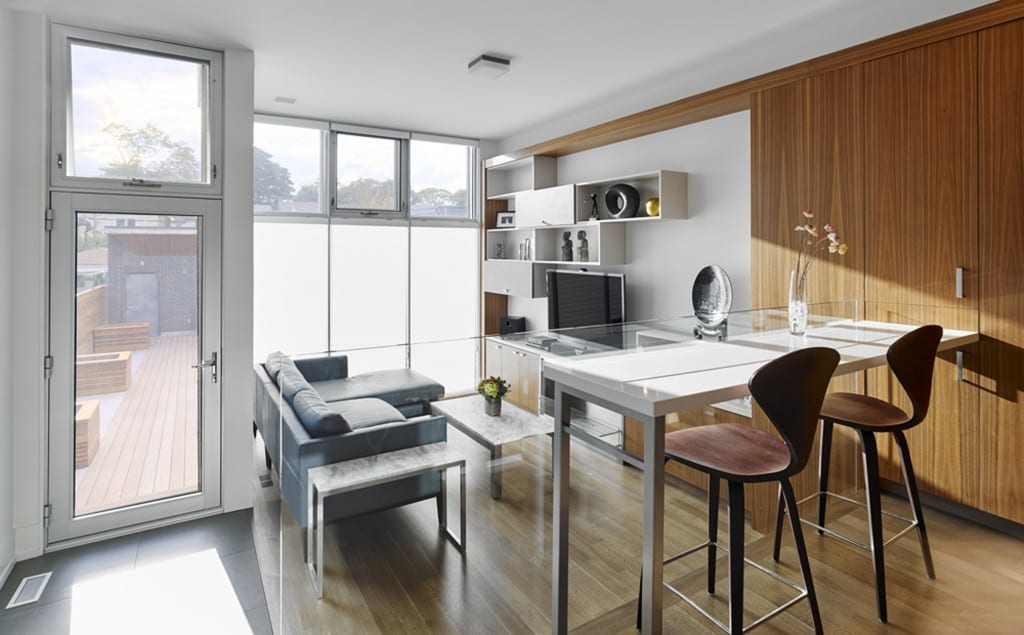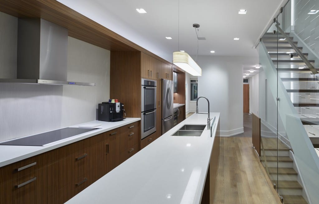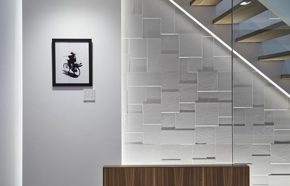Demolition of a neglected bungalow paved the way for the Owner and Architects to realize their vision for a new urban townhouse in this transitioning neighbourhood. The result is a three-storey modern house integrated into the 1940s streetscape. It simultaneously accommodates a young family and embodies the modern urban lifestyle of design industry professionals. Many specialty lighting details are architecturally integrated into the design highlighting the Owner’s dedication to quality lighting in his professional life. Architectural details such as light slots, coves, and textural elements create visual interest and a serene ambiance throughout the home.